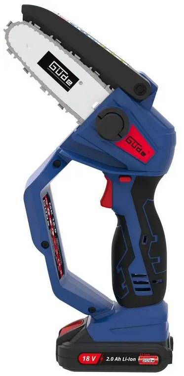 Die Güde Akku-Minikettensäge MK 18-201-05 ist eine leistungsstarke, handliche und vielseitige Einhandsäge zum Beschneiden von Obstbäumen, zum Entasten, sowie jeglicher Gehölzpflege ums Haus und im Garten. Im Lieferumfang enthalten sind; ein 2,0 Ah-Akku, das passende Ladegerät, sowie ein Qualitätsschwert und eine hochwertige Kette mit langer Standzeit. Die Einhandkettensägen überzeugt durch angenehme Haptik, einem vibrationsarmen und hocheffizienten Elektromotor sowie durch das geringe Gewicht, für ein ermüdungsarmes Arbeiten mit einer Hand. Durch den oberen Ketten-Sicherheitsschutz und den Handschutz werden die Hände bestmöglich vor Verletzungen geschützt.