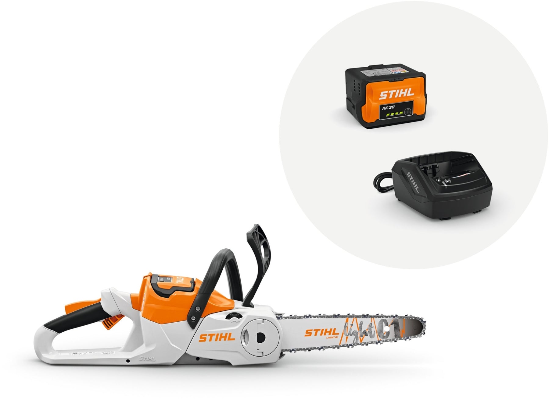 Wenn Sie die private Garten- und Grundstückspflege rund ums Haus oder handwerkliche Arbeiten mit der Akku-Motorsäge STIHL MSA 70 C-B direkt starten möchten und keinen Akku und kein Ladegerät aus dem STIHL AK-System besitzen, ist dieses Set eine gute Wahl. Darin sind neben der vielseitig einsetzbaren STIHL MSA 70 C-B der Lithium-Ionen-Akku STIHL AK 30 und das Standardladegerät STIHL AL 101 enthalten. Die vielseitige Kettensäge unterstützt Sie effektiv beispielsweise beim Schneiden von Ästen von Bäumen und Sträuchern oder beim Aufarbeiten von Holz. Sie ist dabei so leise, dass Sie ohne Gehörschutz und auch in geschlossenen Räumen und in lärmsensiblen Bereichen wie Wohngegenden arbeiten können.