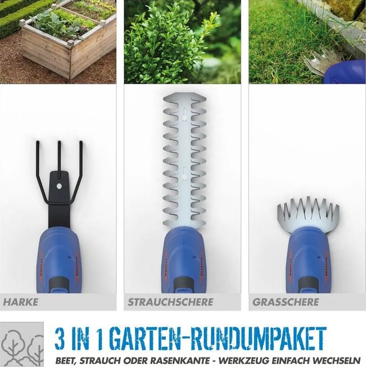 Handgerät, Grasscherenaufsatz, Hecken-/Strauchscherenaufsatz, Harkenaufsatz, ohne Akkupack und Ladegerät (Akku und Ladegerät aus der Easy-Energy-Exchange Akkuserie sind separat erhältlich)