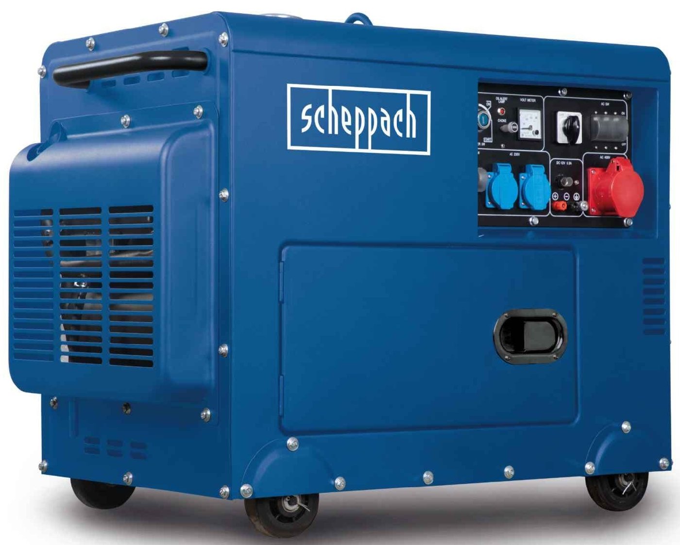 Der SG5200D Stromerzeuger von Scheppach liefert mit max. 5000 W ausreichend Strom für Arbeiten rund ums Haus und auf der Baustelle. Dank stabilem Gehäuse, Fahrvorrichtung mit vier Rädern und Handgriff ist der Stromerzeuger vielseitig einsetzbar. Ein 16 Liter Tank sorgt für eine mehrstündige Stromversorgung und dank des 400 V Stromanschlusses können auch Maschinen mit Starkstrombedarf betrieben werden.