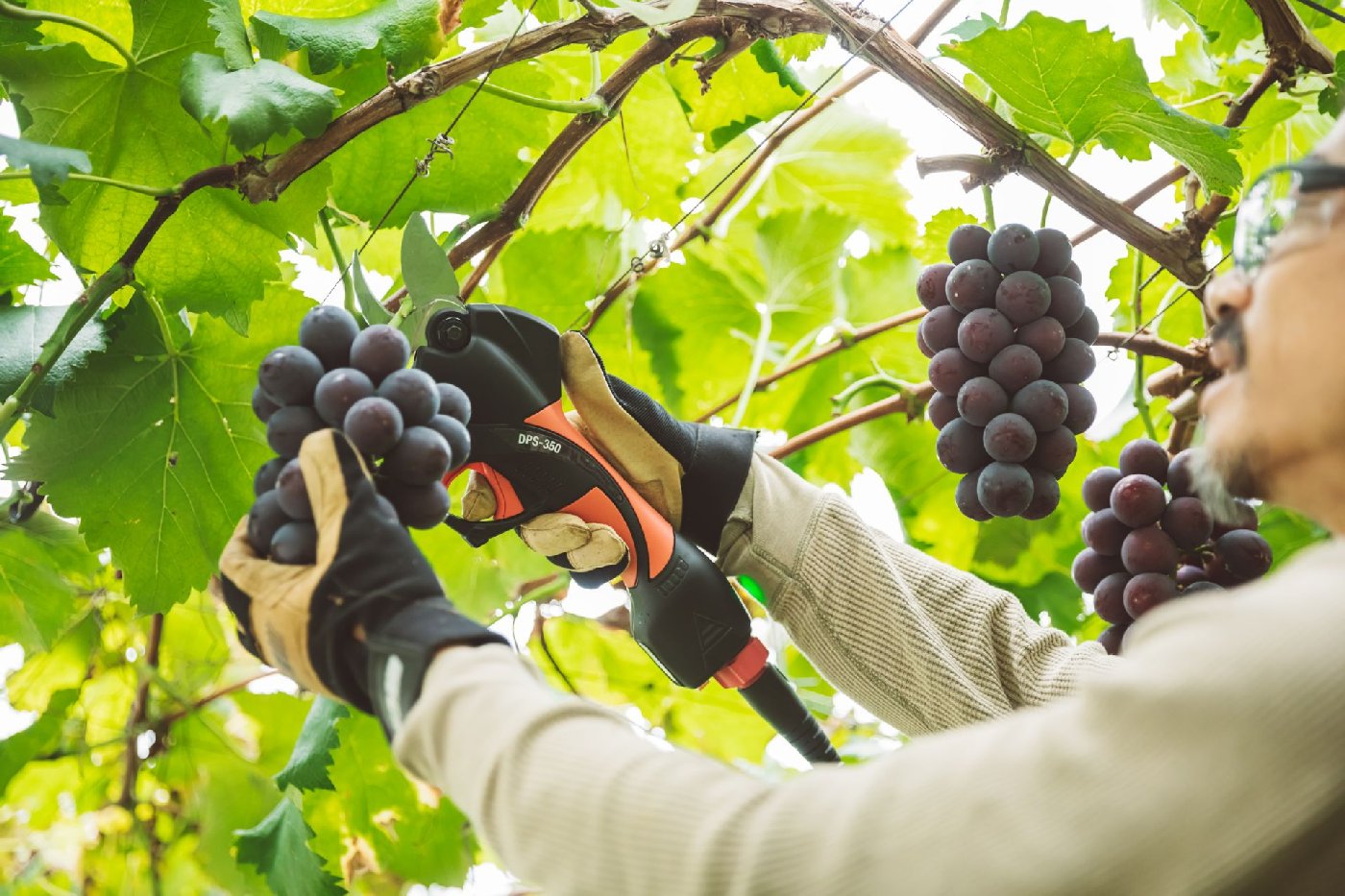 Die ECHO Akku-Rebschere DPS-350 ist ein leichtes Profiwerkzeug für den Wein- und Obstbau. Mit nur 0,78 kg und bis zu 12.000 Schnitten pro Akkuladung ermöglicht sie präzises und ermüdungsarmes Arbeiten.