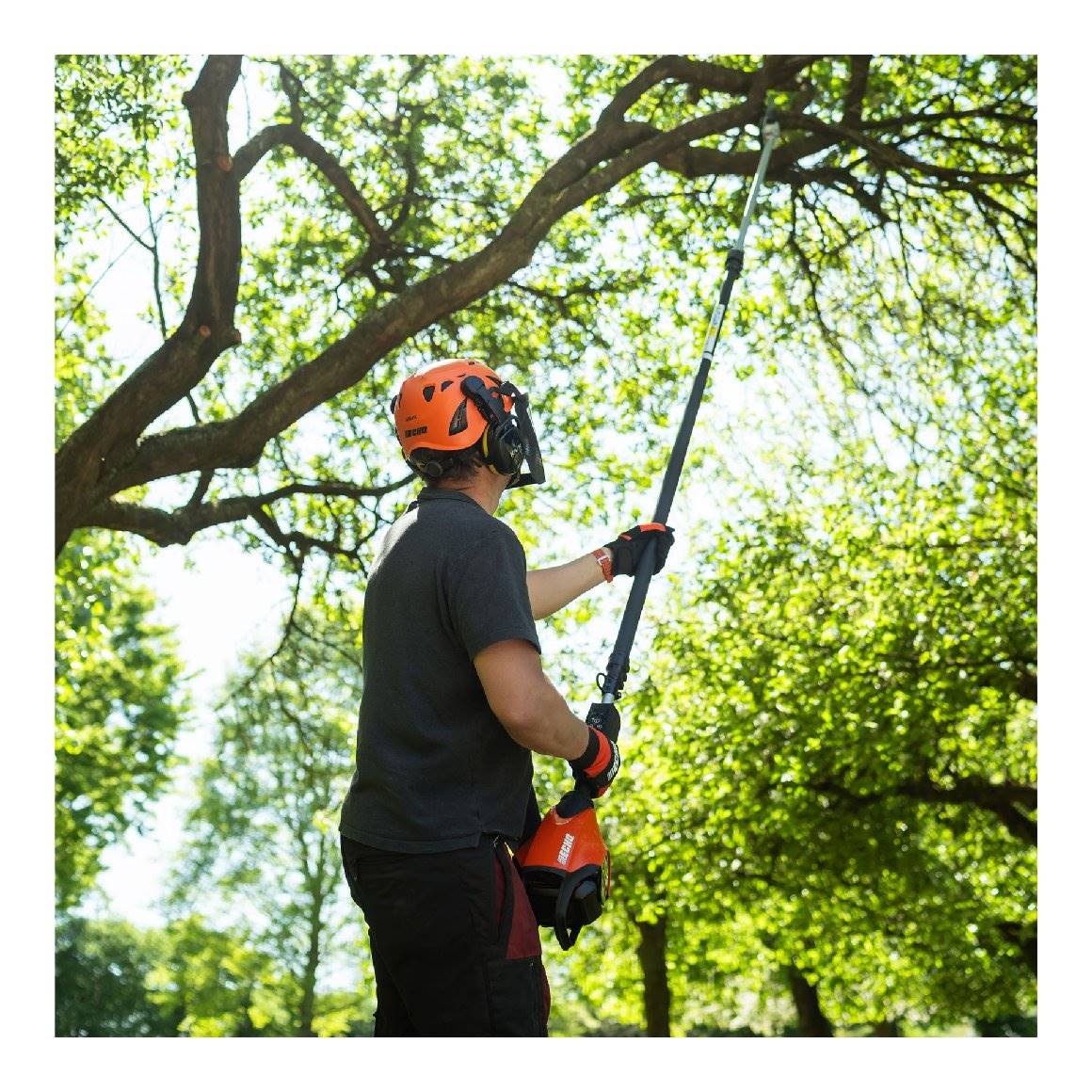 Der ECHO DPPT-2600LW Akku-Hochentaster ist der erste professionelle Teleskop-Hochentaster der X-Serie für anspruchsvolle Baumpflegearbeiten. Mit nur 5,0 kg Gewicht ist er über 2 kg leichter als vergleichbare Benzin-Hochentaster und bietet außergewöhnliche Manövrierbarkeit bei reduzierter Ermüdung. Der Teleskopschaft ist von 2,8 m bis 3,97 m ausziehbar und ermöglicht komfortables Arbeiten in Höhen bis zu 5 m. Vom Entasten von Bäumen über das Entfernen von Totholz und Sturmbruch bis zum Obstbaumschnitt - der DPPT-2600LW Akku-Hochentaster ist der ideale Begleiter für Profis in der Baumpflege, Obstbau, Kommunen sowie Land- und Forstwirtschaft. Dank des emissionsfreien und geräuscharmen Betriebs eignet er sich hervorragend für Arbeiten in lärmsensiblen Bereichen und Wohngebieten.