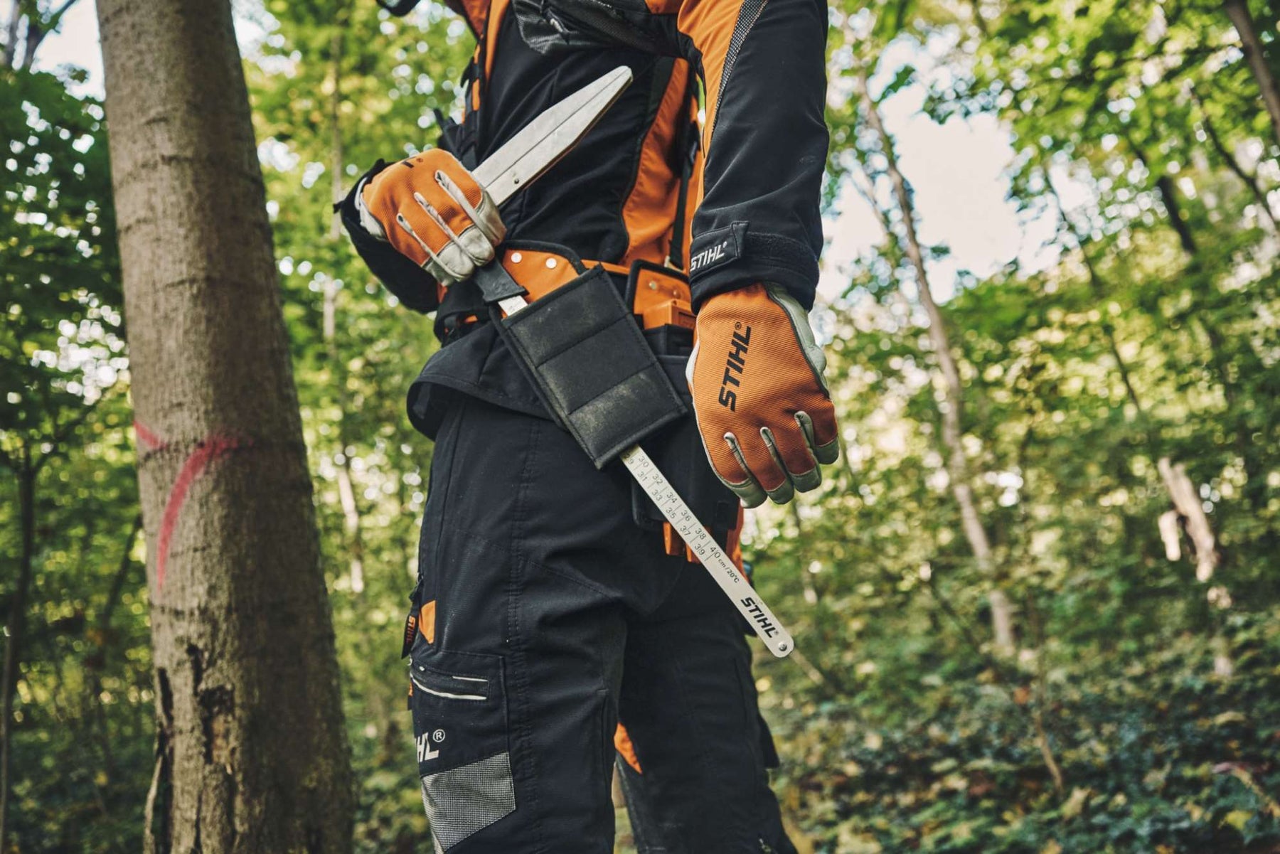 Die vorgespannte Polsterung in der Halterung sorgt dafür, dass die Messkluppe immer zuverlässig in Ihrer Position bleibt. Der Messkluppenhalter wird angewinkelt am STIHL Hüftgurt ADVANCE X-Flex oder am STIHL Gürtel ADVANCE X-Flex angebracht. Dadurch schränken selbst lange Messkluppen Ihre Bewegungsfreiheit nicht ein und die Messkluppe kann einfach aus dem Halter genommen werden.