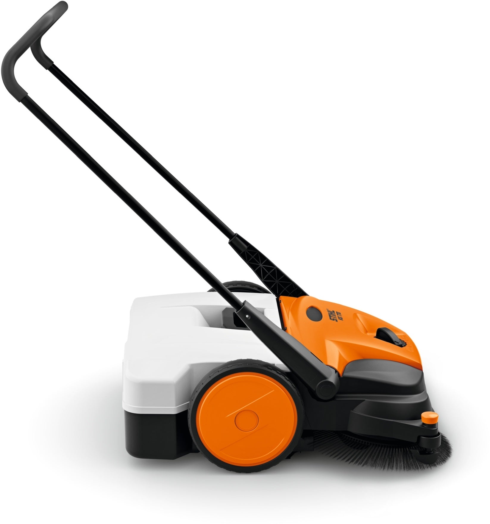 Mit dem Kehrgerät STIHL KG 770 können Profis und Privatanwender größere Flächen im Innen- oder Außenbereich wie Hallenböden mit versiegeltem Estrich oder Flächen aus Verbundsteinen oder Pflastersteinen effizient reinigen. Das STIHL Kehrsystem MultiClean PLUS unterstützt die Aufnahme von unterschiedlichem Schmutz auf einer Kehrbreite von 77 cm. Die zusätzliche Kehrwalze des STIHL KGA 770 nimmt selbst feinsten Staub auf. Die umlaufende Dichtleiste hält in Verbindung mit einem Luftfilter aufgewirbelten Staub wirksam zurück. Durch die seitlich überstehenden Tellerbesen können Sie damit auch an Wänden oder entlang von Bordsteinen zuverlässig kehren. Dank des Borstenniederhalters wird die Kehrleistung zusätzlich verbessert.