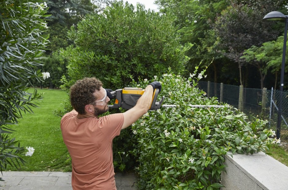 Die HT 500e ist eine leistungsstarke Akku-Heckenschere, mit der du kabellos und ohne Benzinabgase mit nur einer Akkuladung 50 Minuten lang komfortabel arbeiten kannst. Die 58 cm langen lasergeschnittenen Double-Action-Klingen schneiden mühelos durch Hecken und Büsche. Zugunsten einer natürlichen Haltungsposition kann der einstallbare Griff um 180° in drei verschiedene Positionen gebracht werden. Das intuitive Keypad ermöglicht eine leichte Bedienung und der Griff und der hintere Sicherheitsschalter schützen bei der Arbeit. Der eingebaute Schutz an der Klingenspitze beugt Schäden an Wänden und Zäunen vor. Die Heckenschere verfugt zudem über eine praktische Aufhängvorrichtung. Sobald dein Garten also wieder tipptopp ist, kann die Akku-Heckenschere leicht verstaut werden.