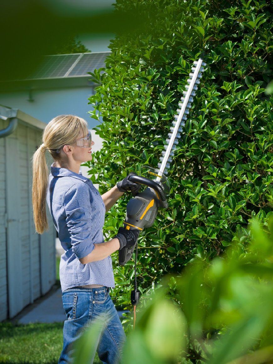 Die STIGA HT 106c ist eine leichte, einfach zu bedienende und ergonomische elektrische Heckenschere. Diese Heckenschere verfügt über einen 600-W-Motor, eine 60 cm langes, doppelte lasergeschnittene Klinge mit 20 mm Zahnabstand und erreicht eine Geschwindigkeit von 3200 U/min. Der ergonomisch geformte hintere Handgriff ist um 180° drehbar und kann in 3 verschiedene Positionen eingestellt werden, um Arm und Handgelenk zu entlasten, egal ob du horizontal oder vertikal schneidest. Geringe Vibrationen und reduzierte Geräuschpegel erhöhen den Benutzerkomfort.