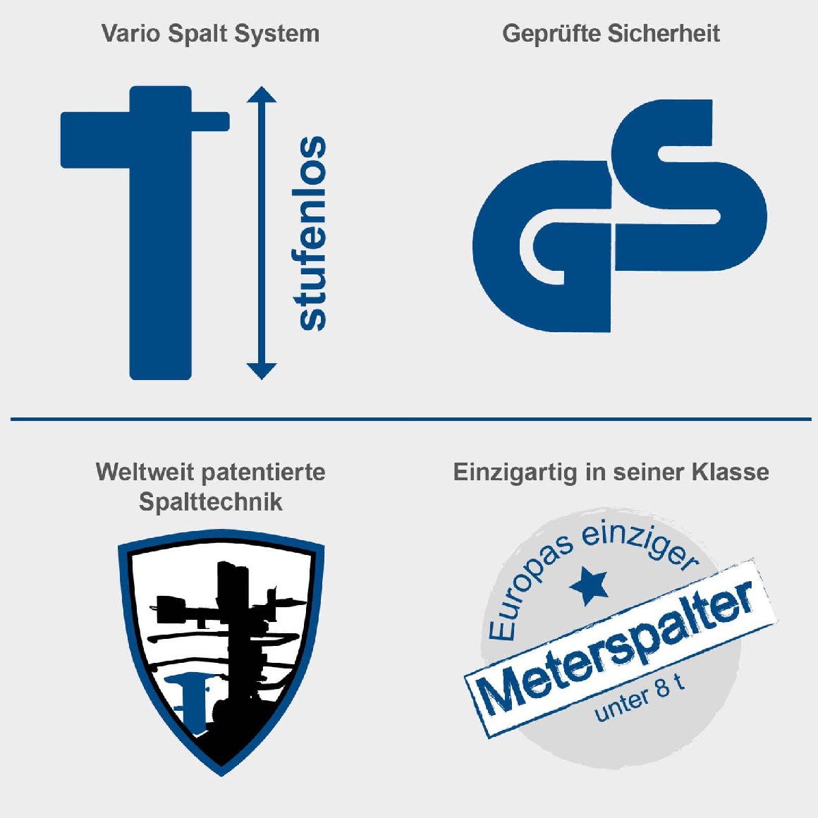 Patentierte Spalttechnik - einziger Spalter Europas unter 8 t der Meterholz spalten kann