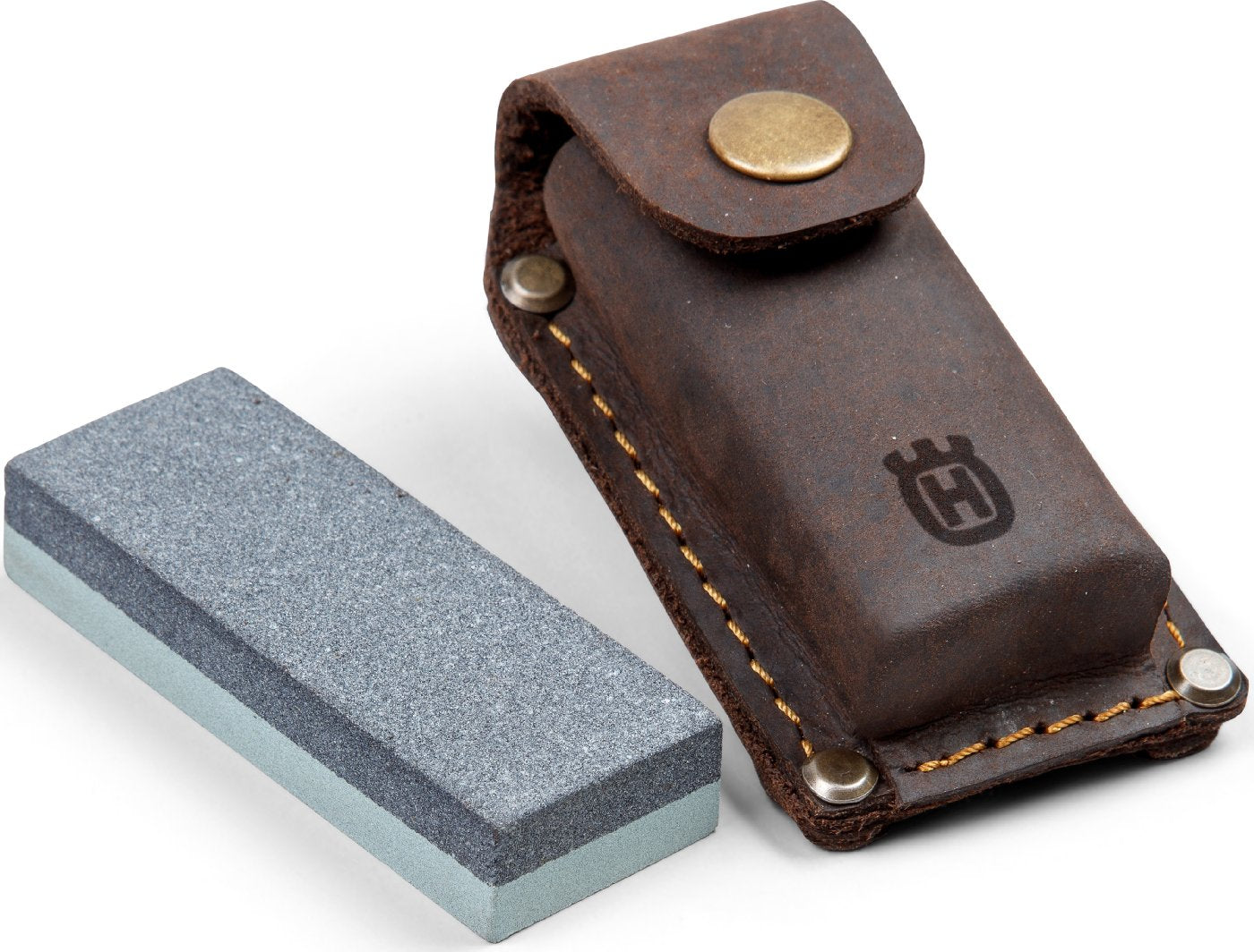 Siliziumkarbid-Schleifstein • grob und fein für schnelles oder feines Schärfen • kann trocken, mit Öl oder Wasser verwendet werden • mit Lederetui
