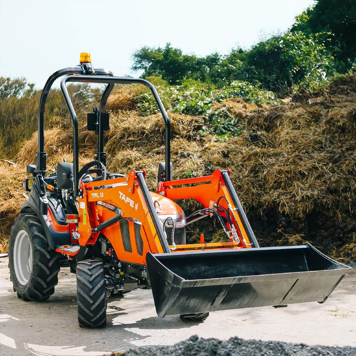 Für den vielseitigen Kompakttraktor ist der TFL-28 Frontlader die ideale Ergänzung. Mit mechanischer Parallelführung und Euro-Aufnahme.