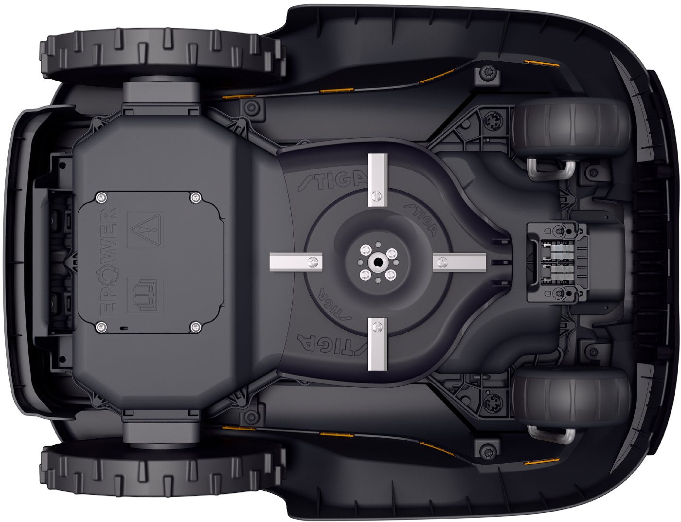 - hohe Sicherheit, da durch einen Hebesensor das Mähmesser gestoppt wird, sobald der Mähroboter angehoben wird.