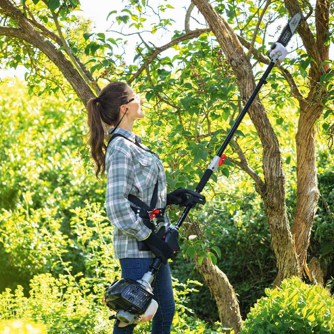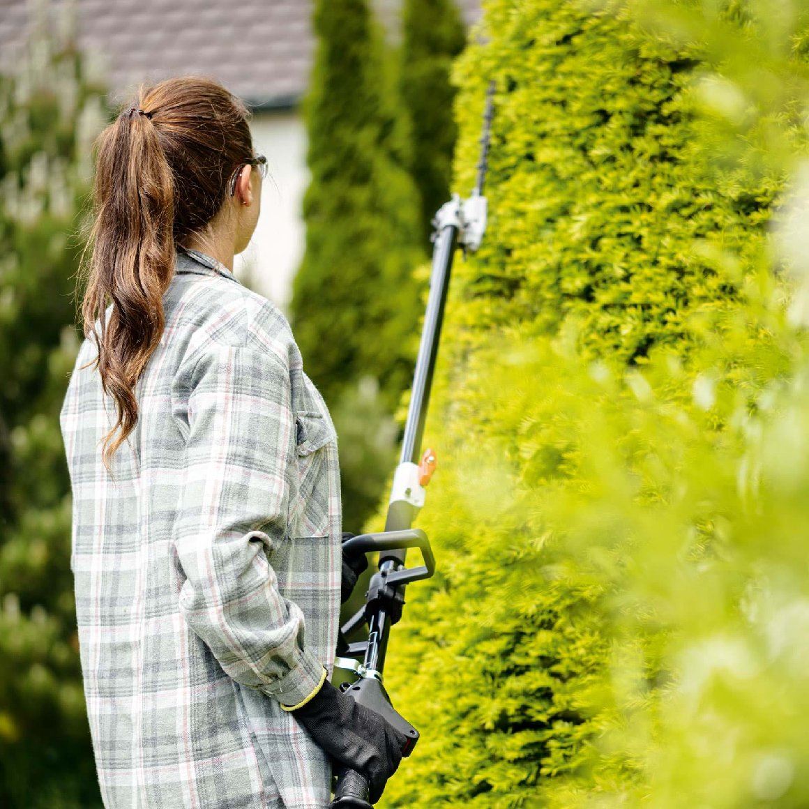 Für die Baumpflege ist der Hochentaster mit 10" ProCut-Schwert und -Kette die richtige Wahl. Die automatische Kettenschmierung sorgt für reibungslose Arbeitsabläufe beim Entasten. Mit einer Gesamtlänge von 2100 mm, davon 254 mm Schnittlänge, lassen sich Äste und Zweige bequem vom Boden aus entfernen.