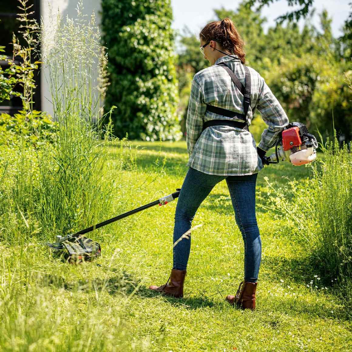 Mit der Motorsense lassen sich kleinere Flächen schnell und unkompliziert von Brennnesseln und Unkraut befreien. Mit den drei Messern des Freischneiders verfügt dieser über eine maximale Schnittbreite von 255 mm.