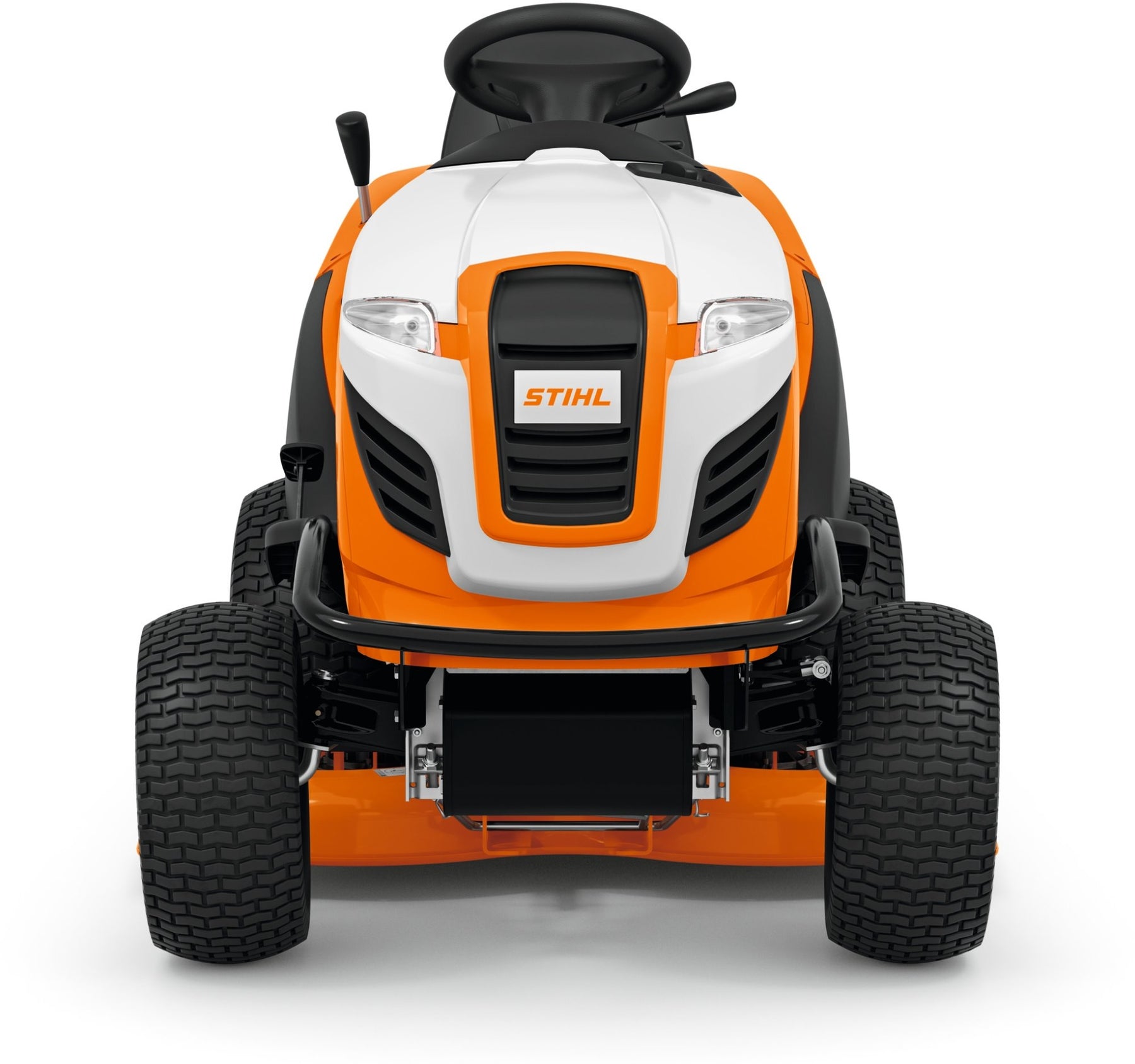 Turf-Reifen Die großen Turf-Reifen des STIHL Aufsitzmähers schonen die Rasenfläche. Dank ihrer abgerundeten Reifenschultern vermindern sie mögliche Fahrspuren. |