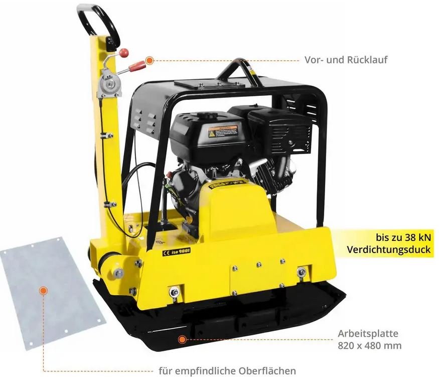 - die Rüttelplatte ist Reversierbar und verfügt über einen Vor- und Rücklauf
