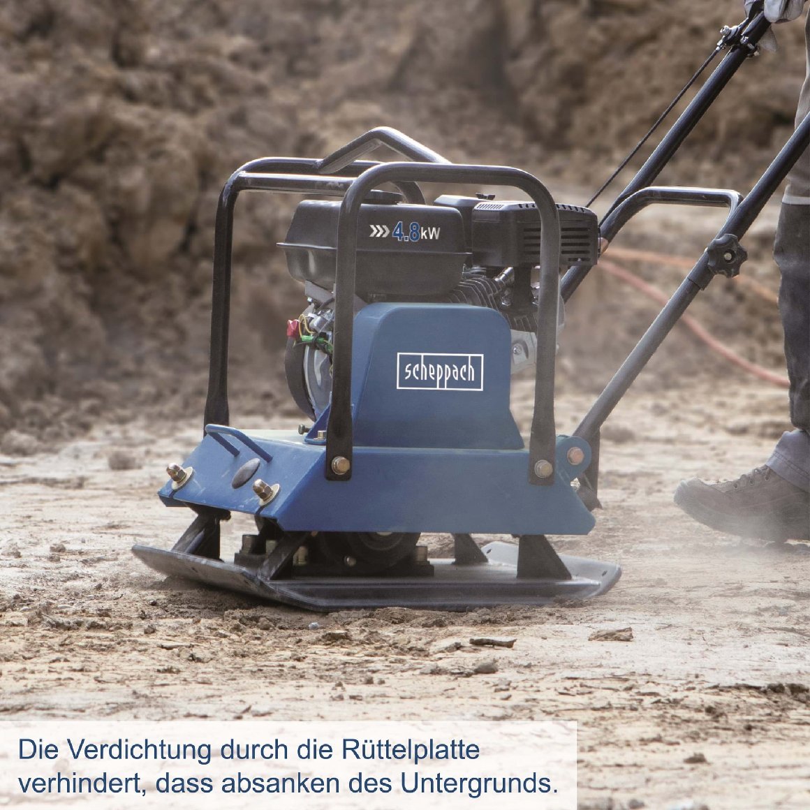 Die scheppach HP1800s Rüttelplatte ist eine motorbetriebene und handgeführte Baumaschine, die zur Bodenverdichtung von kleinen bis mittleren Flächen dient. Auch Vibrationsplatte genannt, ist sie beispielsweise zum Anlegen von Pflasterwegen, Einfahrten und Terrassen sowie für den Garten- und Landschaftsbau bestens geeignet.