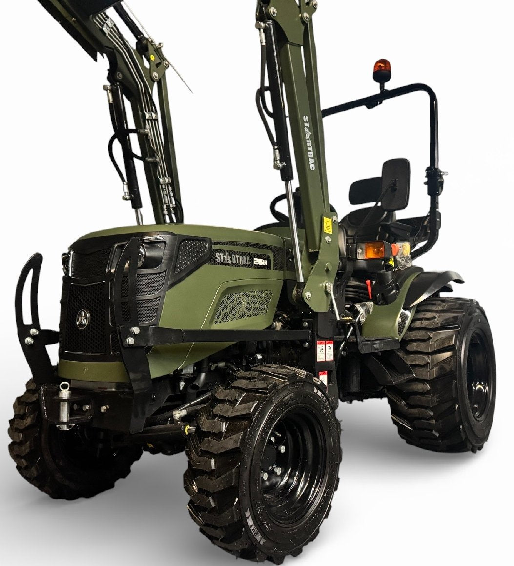 Der STARTRAC 26 Hydrostat mit Frontlader vereint Kraft, Vielseitigkeit und Komfort. Ausgestattet mit einem Mitsubishi 3-Zylinder-Dieselmotor mit 25 PS und einem hydrostatischen Getriebe (HST) bietet dieser kompakte Traktor maximale Effizienz bei allen Einsätzen. Der zuschaltbare Allradantrieb sorgt für hervorragende Traktion, selbst auf schwierigem Gelände.