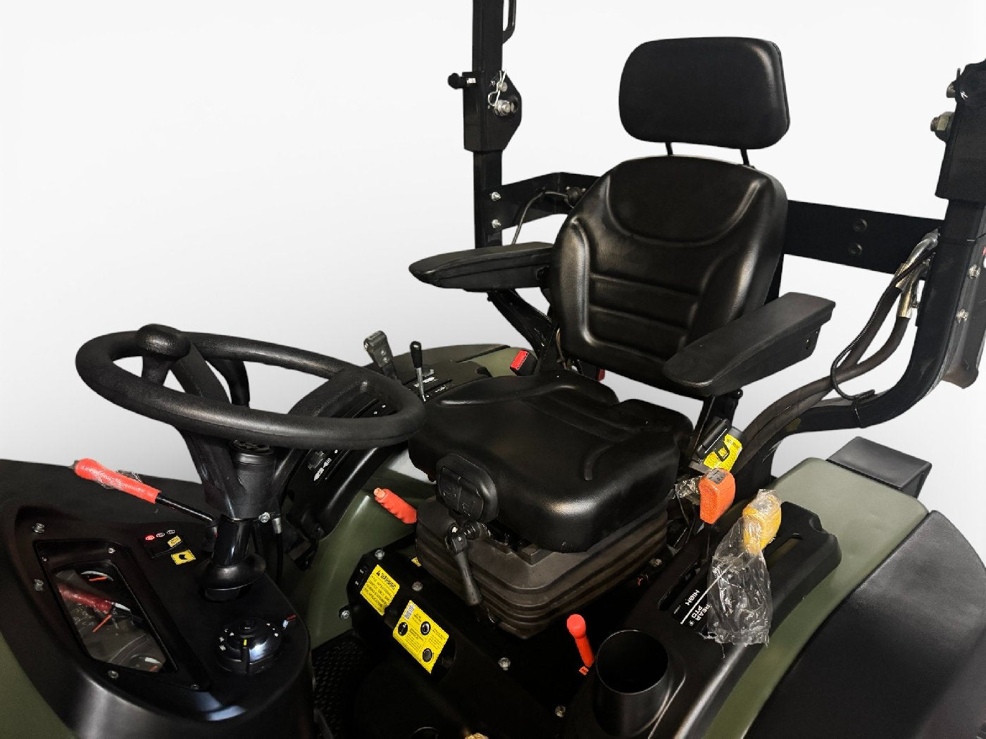 Der serienmäßige Frontlader mit Schaufel erweitert den Einsatzbereich des Startrac 26 HST erheblich. Mit einer Hubkraft von 500 kg am Frontlader und der Möglichkeit, verschiedene Anbaugeräte zu montieren, lässt sich Material mühelos aufnehmen, transportieren oder verladen. Zusätzlich überzeugt der Traktor mit einer Hubkraft von 800 kg am Heck, hydraulischer Servolenkung und ergonomischer Fahrerplattform - für präzises und komfortables Arbeiten.