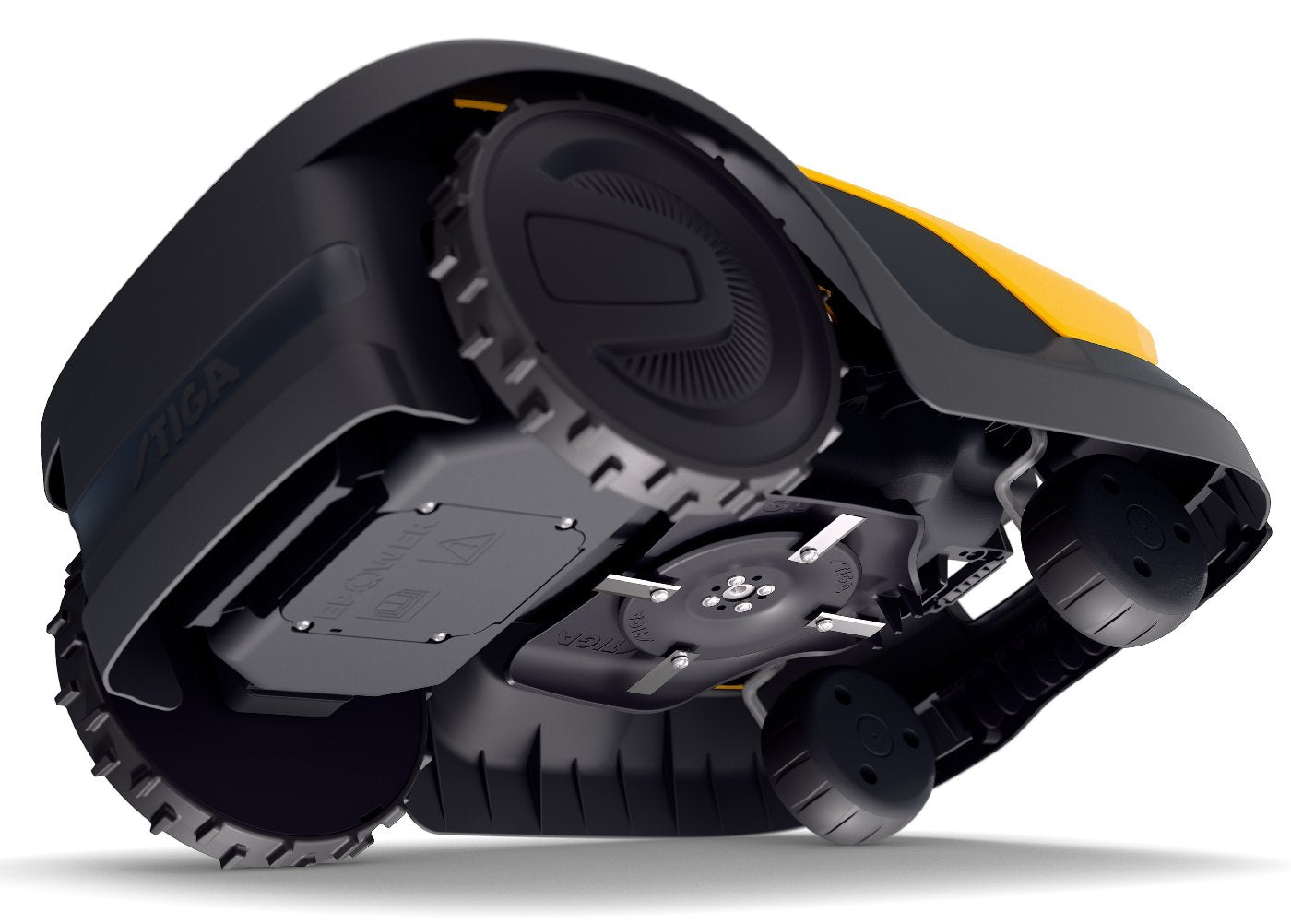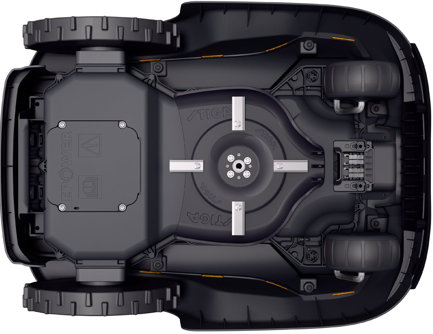 hohe Sicherheit, da durch einen Hebesensor das Mähmesser gestoppt wird, sobald der Mähroboter angehoben wird.