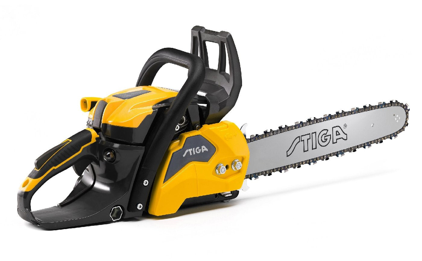 Die Kettensäge STIGA CS 545 (16")mit einer 40 cm breiten Führungsschiene wird von einem 42,4-cm³-Motor (1,9 kW) angetrieben. Dies sorgt für eine hohe Leistung und Vielseitigkeit. Die CS 545 (16")verfügt über ein 40 cm (16") breites Schwert und ein Magnesiumdruckgussgehäuse, das folgende Vorteile bietet: Robustheit, Leichtheit und eine schnelle Kühlung. Der Spannschlüssel befindet sich leicht zugänglich unter dem hinteren Griff und die Ölpumpe läuft automatisch und ist einstellbar. Wartungsarbeiten können dank der Funktionen schnell und einfach durchgeführt werden. Dazu zählen u. a. der Griff zum Öffnen der Luftfilterabdeckung, ohne dass zusätzliche Werkzeuge erforderlich sind, und das Fenster für die Füllstandkontrolle. Der ergonomische Griff aus weichem Material und das Federsystem dämpfen die Vibrationen und sorgen für einen höheren Komfort.