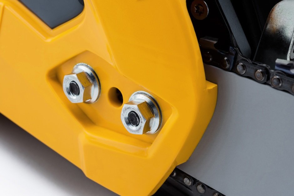 der seitliche Kettenspanner ermöglicht ein unompliziertes und einfaches Nachspannen der Sägekette