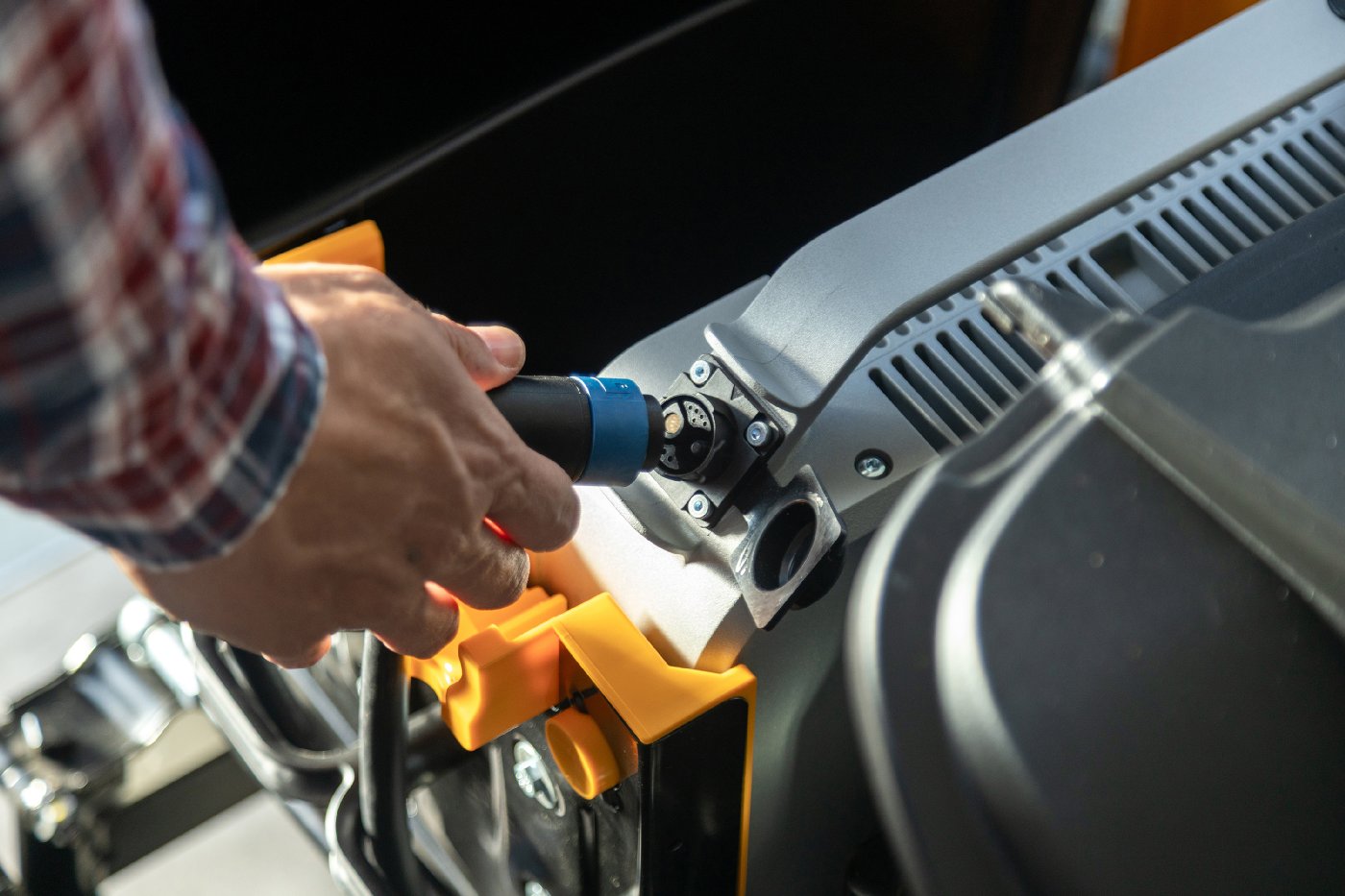 Der LED-Scheinwerfer ermöglicht das Arbeiten in der Dämmerung oder bei schlechten Sichtverhältnissen.