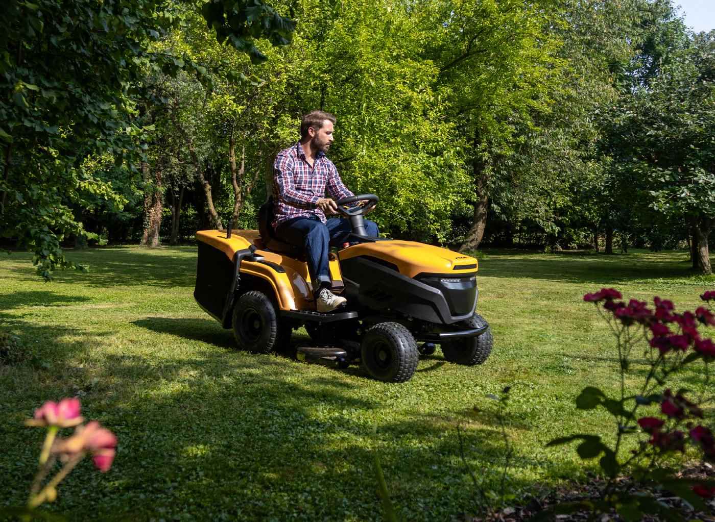 Dank des elektrischen Getriebes beschleunigen und bremsen Sie butterweich. Die kompakte Bauweise ermöglicht präzises Manövrieren um Hindernisse wie Bäume oder Beete.