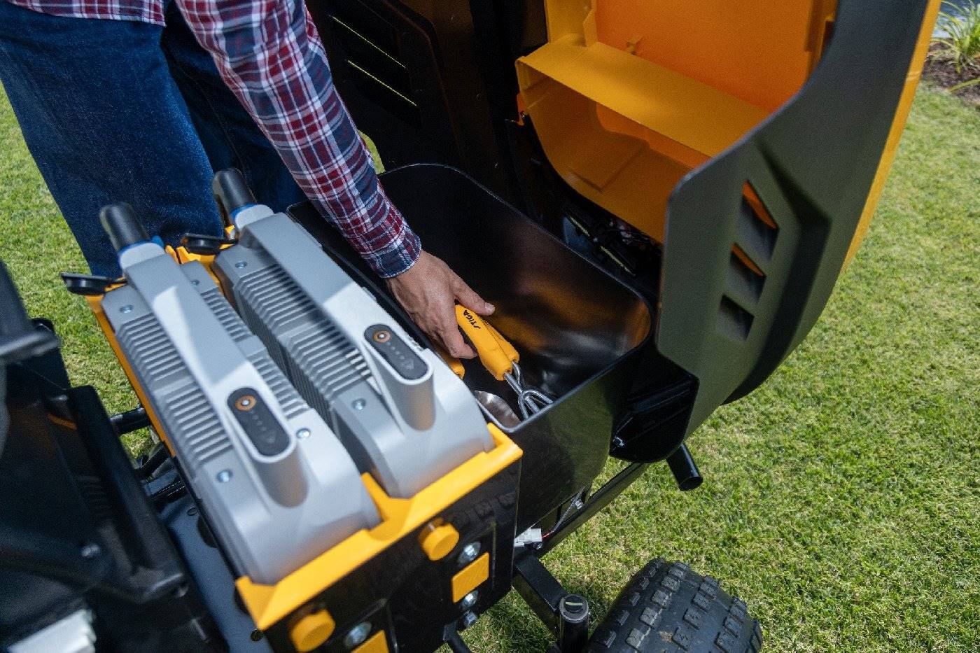 Enorme Flächenleistung: Mit einer Schnittbreite von 98 cm und der Option auf modulare Akkus bewältigt der Estate 598e mühelos Gärten von 4.500 m² bis zu beeindruckenden 7.500 m² mit einer Ladung.