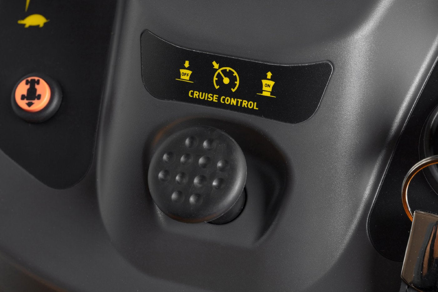 Der Tempomat ermöglicht die Einstellung einer konstanten Geschwindigkeit, wodurch das Arbeiten deutlich komfortabler wird und die Geschwindigkeit auch auf unebenen Rasen oder an der Steigung ganz einfach gehalten werden kann.