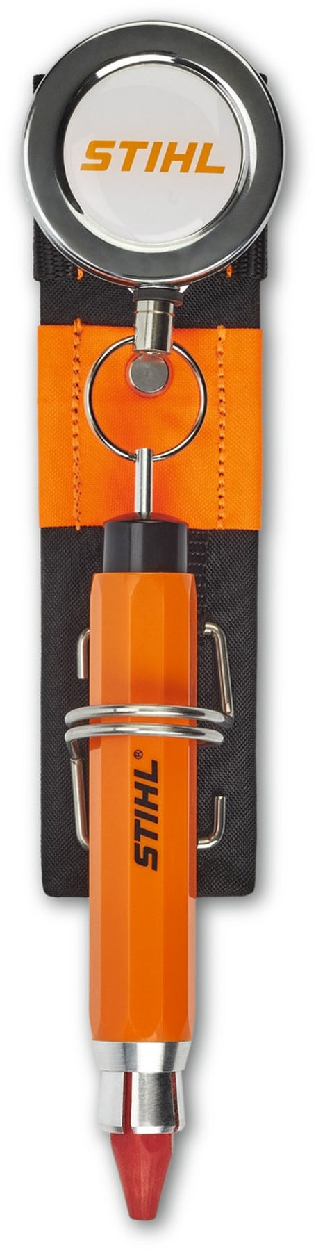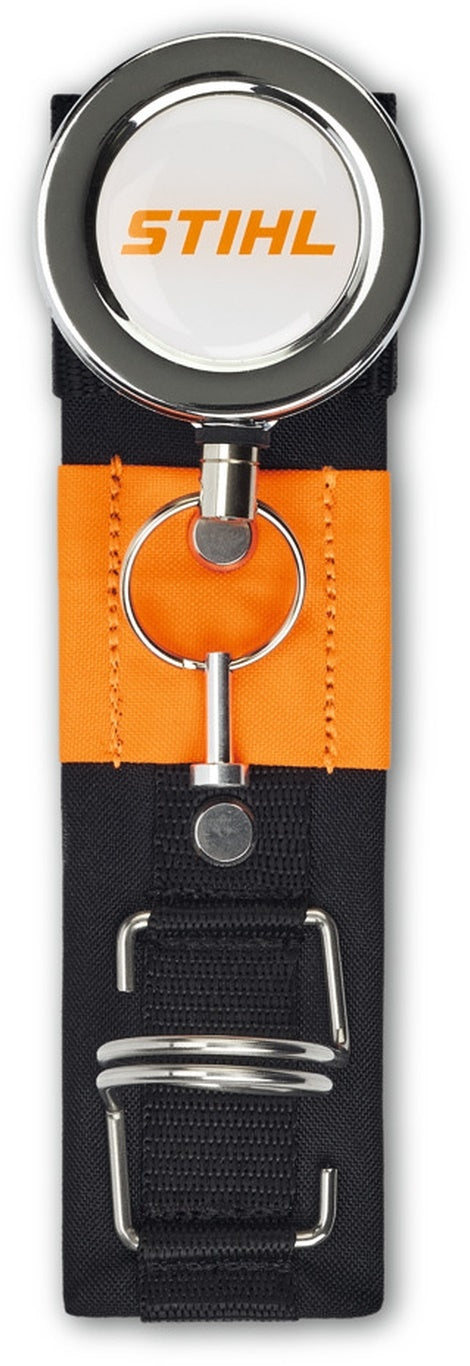 Die Halterung für den STIHL Kreidehalter ADVANCE X-Flex ist Teil des STIHL Modularen Gurtsystems ADVANCE X-Flex. Wenn Sie als Profi im Forst Kreide zum Markieren benötigen, so ist es hilfreich, diese stets griffbereit zu haben. Gleichzeitig sollte Sie aber bei allen anderen Tätigkeiten sicher verstaut werden können. Genau hier hilft die Halterung für den STIHL Kreidehalter ADVANCE X-Flex. Einerseits ermöglicht er durch den mitgelieferten Aufroller mit langem Metallseil einen besonders hohen Aktionsradius beim Anzeichnen, beispielsweise mit der Signierkreide STIHL Marker Pro. Andererseits fixiert ein Metallbügel die Kreide immer zuverlässig an der Halterung während des Transports.