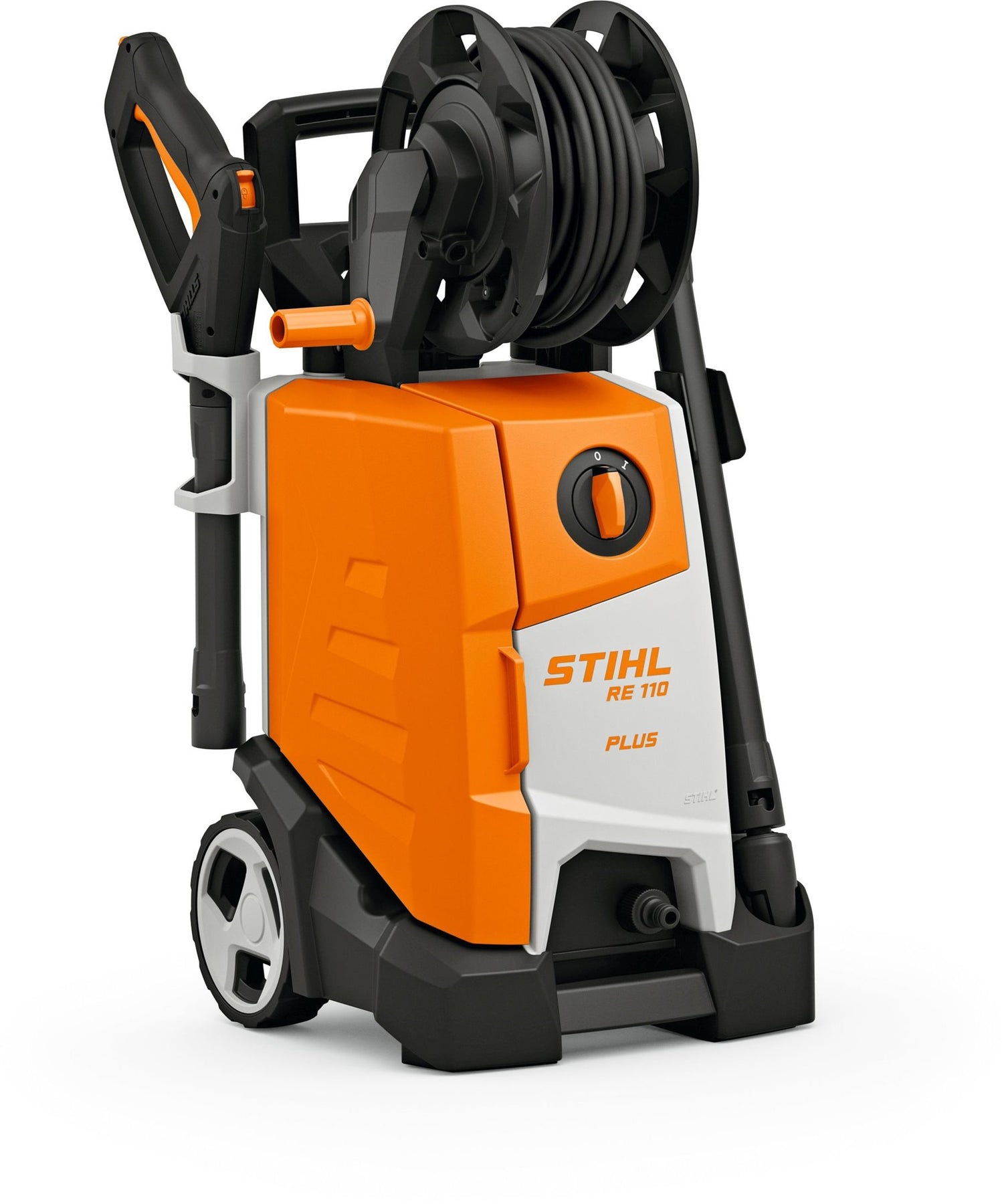 In Arbeitspausen dient eine Parkposition am STIHL RE 110 PLUS für ein einfaches Abstellen der Hochdrucklanze. Die Düsen und das Netzkabel können Sie im seitlich klappbaren Staufach mit integrierter Düsen- und Netzkabelaufbewahrung direkt am Hochdruckreiniger STIHL RE 110 geschützt verstauen. Dank der integrierten Schlauchtrommel können Sie den Hochdruckschlauch einfach handhaben und ihn nach Ende der Reinigung platzsparend aufbewahren. Der Aluminium-Teleskopgriff, ein Transportgriff sowie die integrierten Transporträder ermöglichen den komfortablen Transport des STIHL RE 110 PLUS.