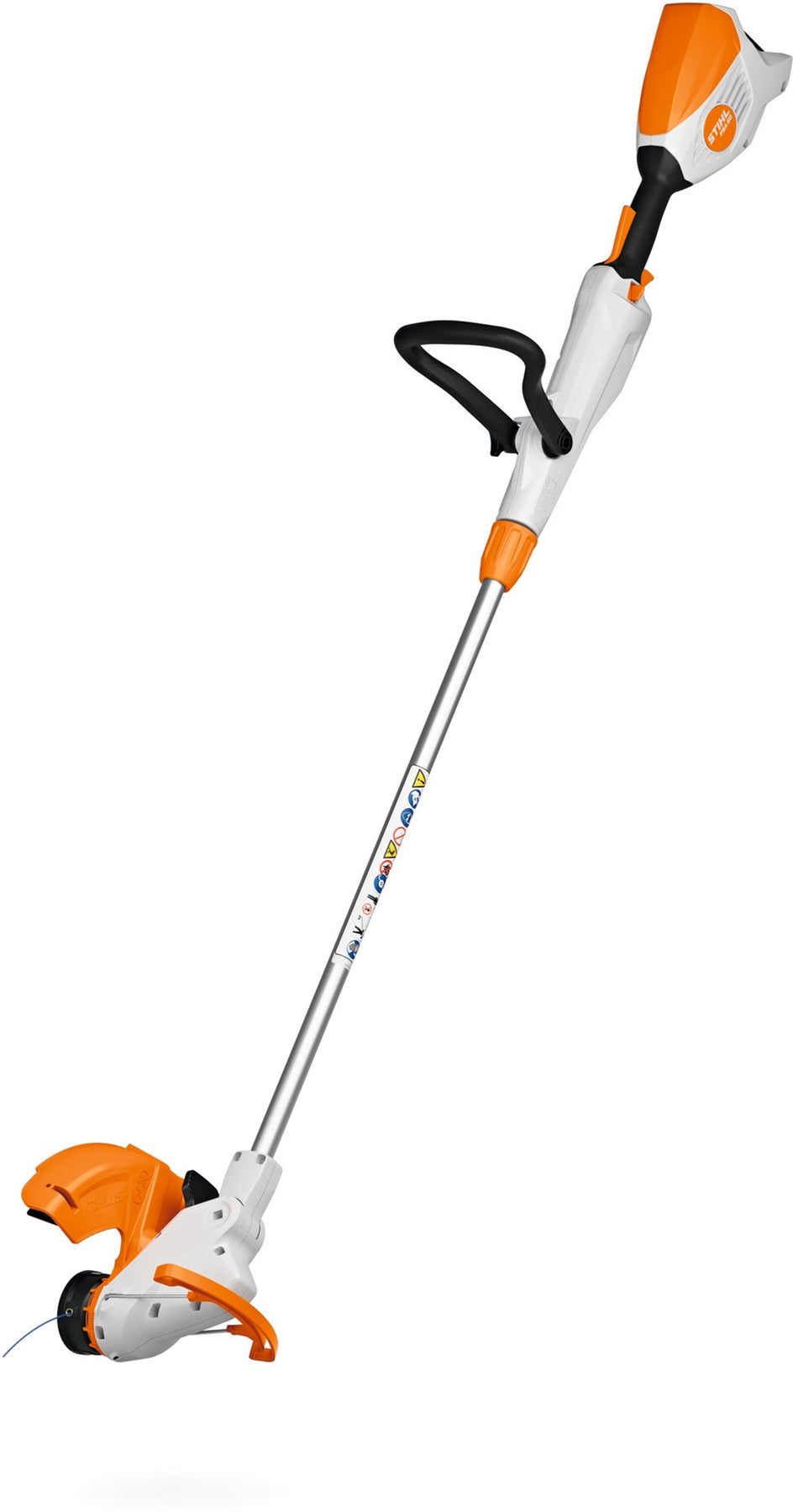 Bei der Akku-Motorsense wurde besonders darauf geachtet, dass Sie damit ergonomisch arbeiten können: Die Schaftlänge und der Bügelgriff lassen sich bequem werkzeuglos einstellen und den Mähkopf können Sie in 3 Stufen abwinkeln. Außerdem kann die STIHL FSA 50 mit wenigen Handgriffen ebenfalls werkzeuglos vom Rasentrimmer zum Rasenkantenschneider umgebaut werden. Ein weiterer Vorteil: Der hoch- und herunterklappbare flexible Abstandsbügel unterstützt schonendes und präzises, nahezu restloses Trimmen rund um Bäume und Sträucher sowie um Gegenstände.