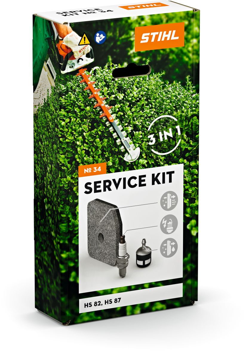 Im STIHL Service Kit 34 für HS 82 und HS 87 erhalten Sie folgende Komponenten für eine Standard-Wartung: