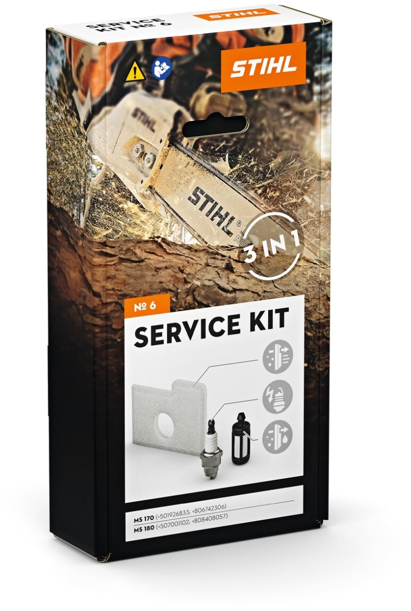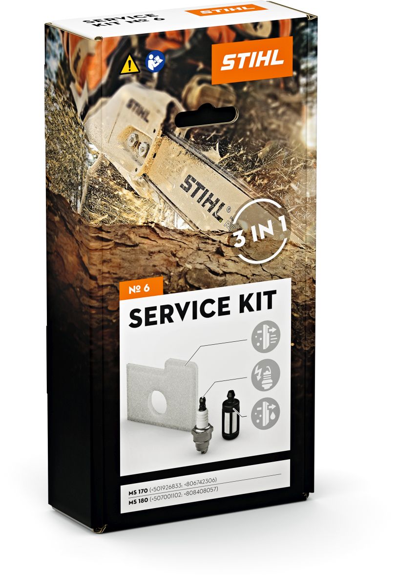Im STIHL Service Kit 6 für MS 170 (nicht 2-Mix) (Maschinennummer erhalten Sie folgende Komponenten für eine Standard-Wartung: