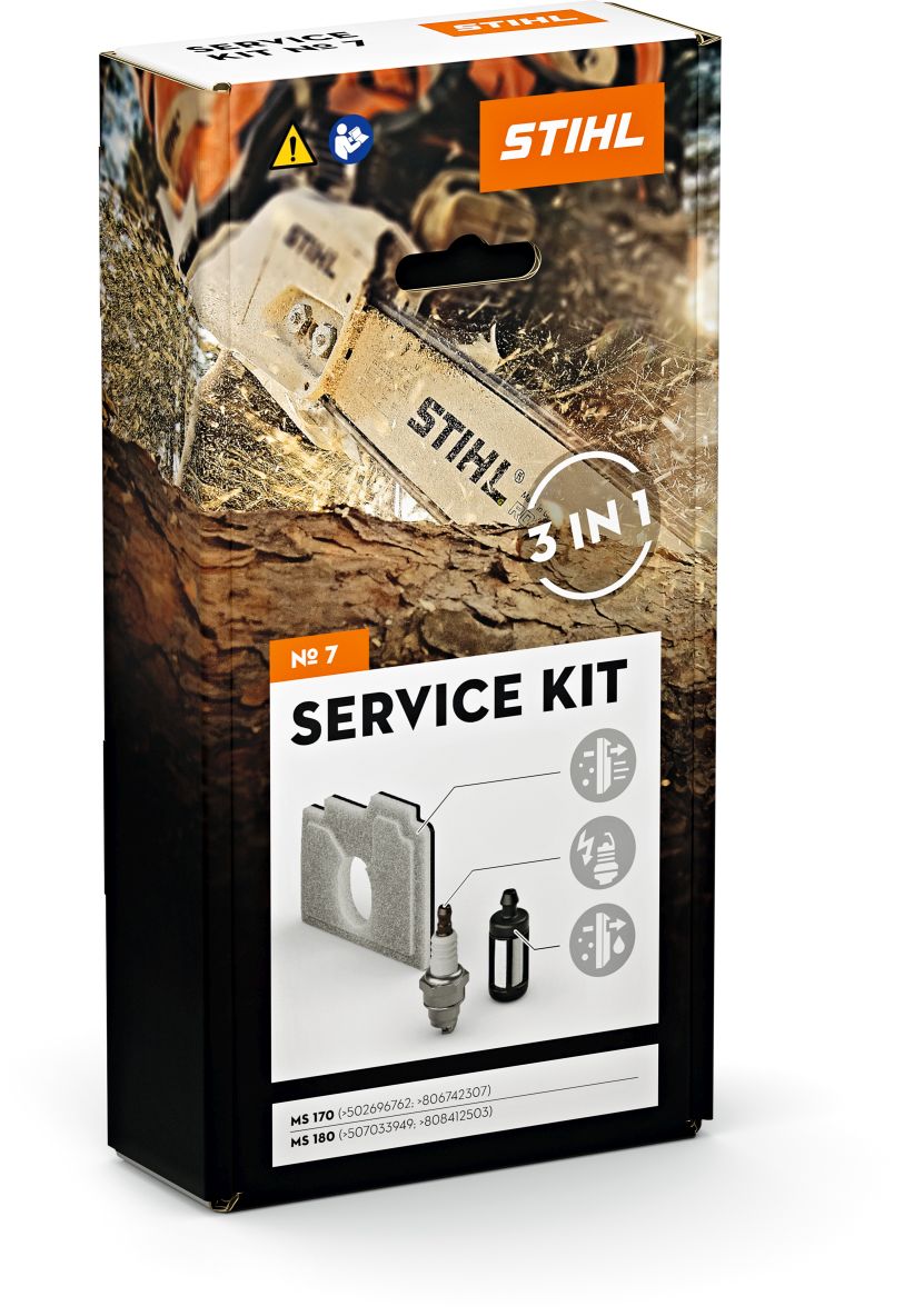 Mit dem Service Kit 7 für STIHL Benzin‑Motorsägen können Sie einfache Wartungsarbeiten an Ihrer Kettensäge selbst durchführen. Durch diese proaktiven und regelmäßigen Standard-Wartungen, wie den Tausch von Luft- und Kraftstofffilter sowie der Zündkerze, erhöhen Sie die Lebensdauer Ihrer Motorsäge. So tragen Sie selbst dazu bei, dass Maschinenkomponenten und Bauteile vor Schmutz und Beschädigung geschützt werden und der Motor Ihrer Kettensäge stets zuverlässig und mit optimaler Leistung arbeitet.