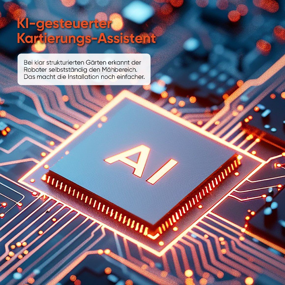 Das Vision AI-System erkennt Hindernisse in Echtzeit und wählt stets den effizientesten Weg um diese herum. Ob Gartenfigur oder Blumenbeet - der X7 navigiert sicher und effizient, ohne den Mähvorgang zu unterbrechen.