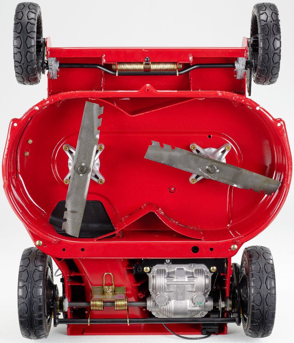 Profimotor mit Zylinderlaufbuchsen aus Gusseisen, innenbelüftetem Vergaser und rotierendem Grasabweiser für maximale Zuverlässigkeit
