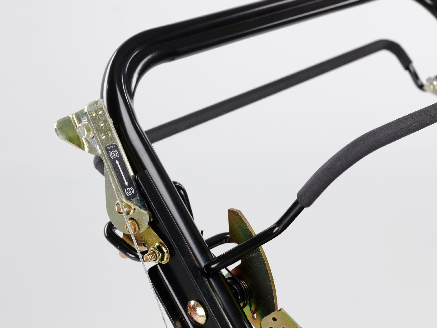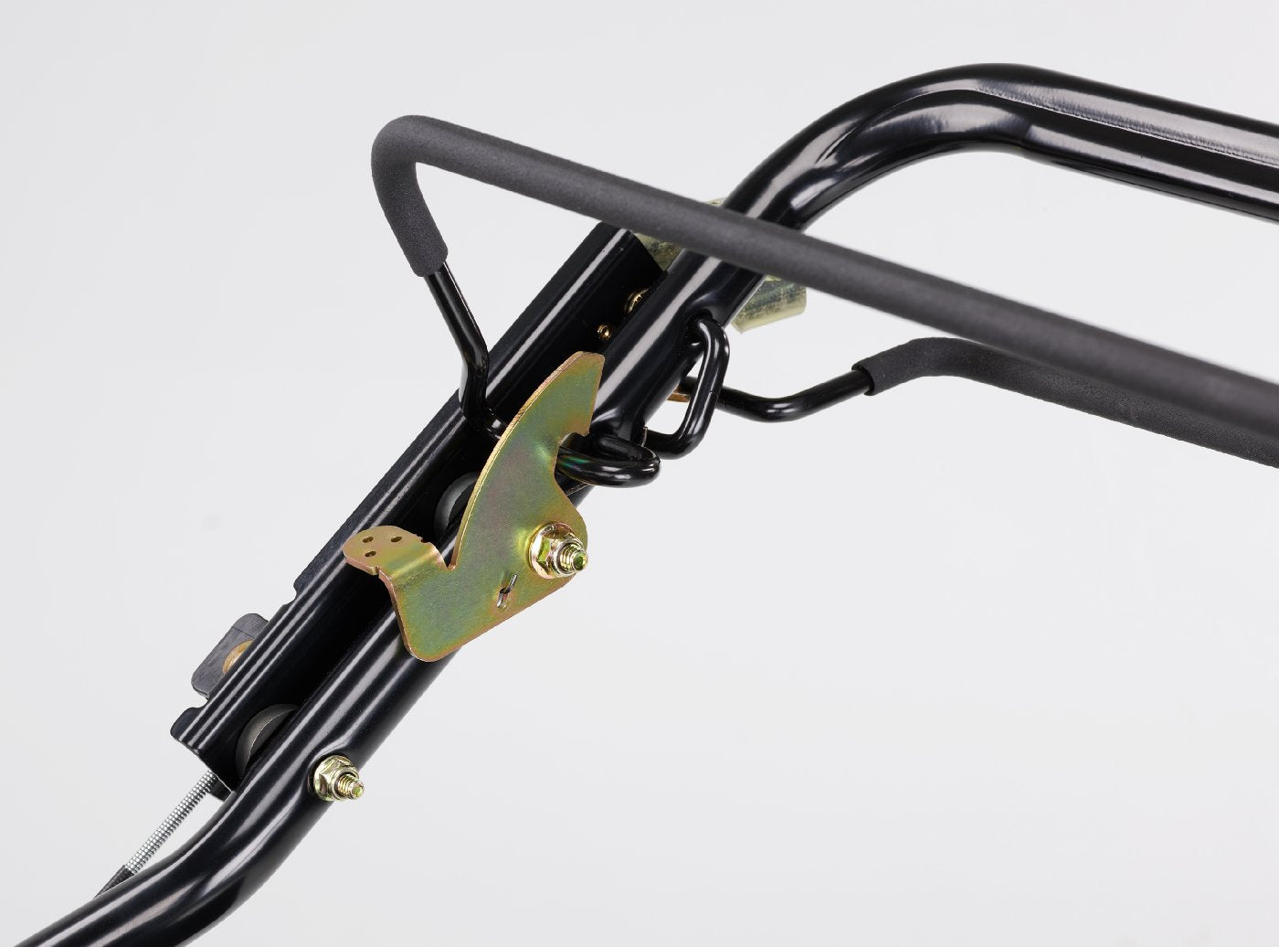 Die Messerkupplung entkoppelt Messer und Motor wodurch die Kurbelwelle geschützt wird. Sie können das Gerät im Fahrantrieb ohne Messereinsatz bewegen und der Grasfangkorb kann ohne Motorneustart entleert werden.