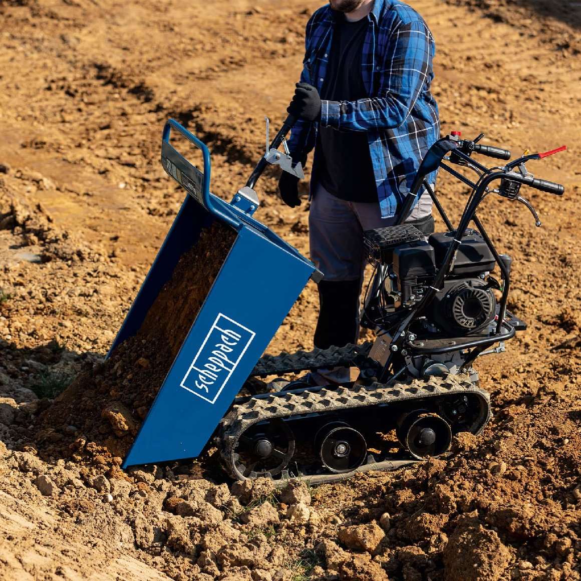 Der benzinbetriebene Profi-Raupen-Dumper ist der ideale Helfer für den Bau, in der Forst- und Landwirtschaft sowie auf großen Grundstücken. Mit ihm transportieren Sie mühelos große Mengen Erde, Kies, Schutt, Steine und vieles mehr. Durch seine einfache Bedienung lässt er sich kinderleicht rangieren. Die Fahrtrichtung kann bequem am Handgriff eingestellt werden. Durch das 3 Vorwärts- und den Rückwärtsgang kann der Dumper ideal an Ihre Bedürfnisse angepasst werden. Egal ob vorwärts oder rückwärts. Die angebrachte Kette eignet sich für matschige, nasse und rutschige Untergründe, gerade auf Baustellen oder im Wald ist somit immer für Haftung gesorgt.