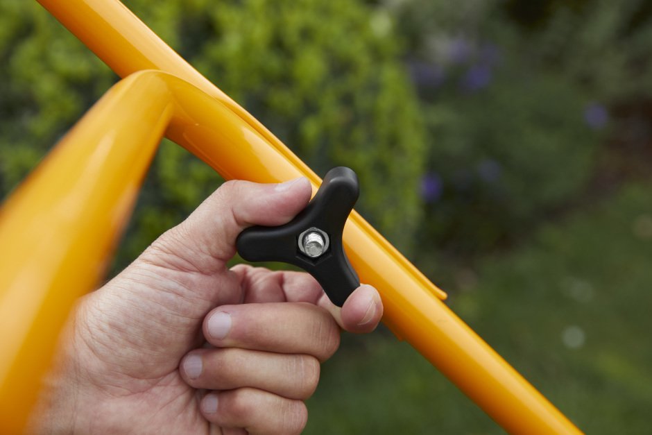 An deine Größe anpassbarer Holm, der zur leichteren Aufbewahrung zusammengeklappt werden kann