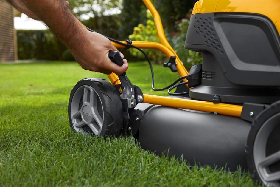 45 cm Schnittbreite, fünf verschiedene, einstellbare Schnitthöhen