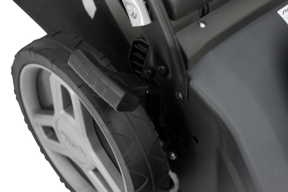 Leichter Transport des Rasenmähers, dank integriertem Transportgriff. | |