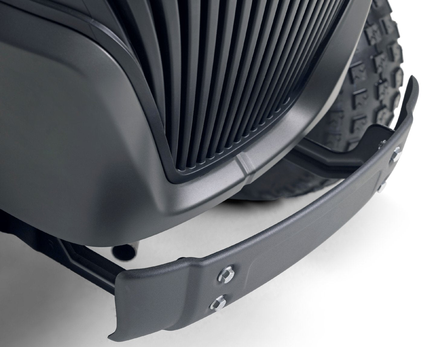 Die serienmäßig im Lieferumfang enthaltene robuste Stoßstange schützt verlässlich die Motorhaube des Rasentraktors | |