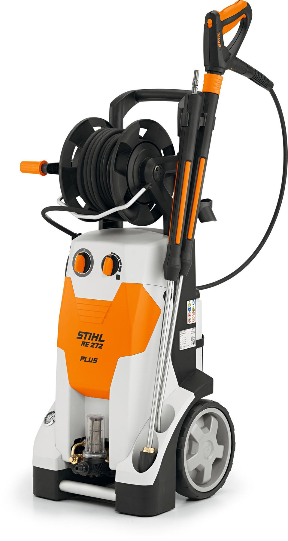 Der Reiniger mit Langsamläufermotor und dem PLUS an Komfort. Schlauchtrommel mit zusätzlicher Aufrollhilfe, 15 m stahlarmierter Hochdruckschlauch, zweites Strahlrohr mit Rotordüse, verschleißfeste, Keramik beschichtete Kolben, ergonomische STIHL Profispritzeinrichtung, Reinigungsmittelbehälter, Druck-/Mengen Regulierung, Manometer, großer Wasserfilter.